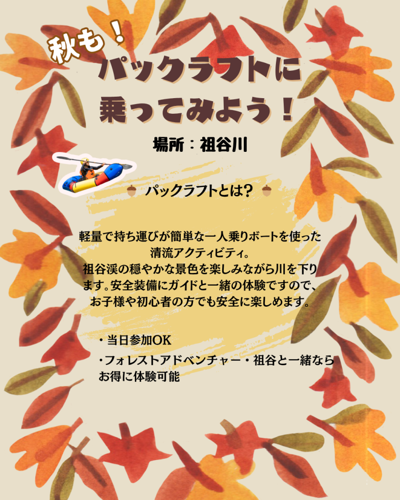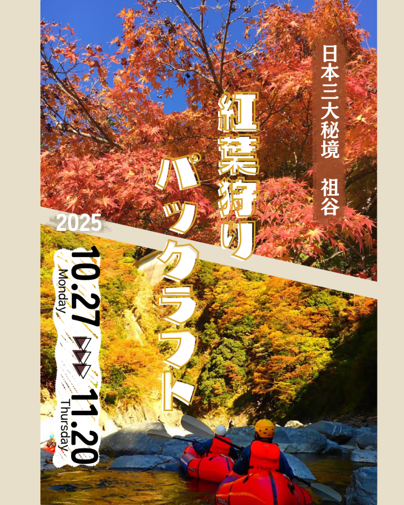 絶景祖谷川紅葉パックラフトツアーが10月27日~スタートします♪
